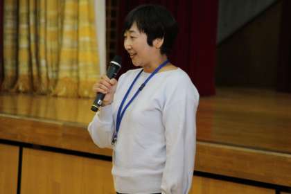 学期区切り式の前後に新しい先生紹介と表彰伝達を行いました。その様子をお知らせします。後期から「校務支援員」として新しく先生に来てもらうことになったので、顔見せを兼ねて自己紹介をしてもらいました。
