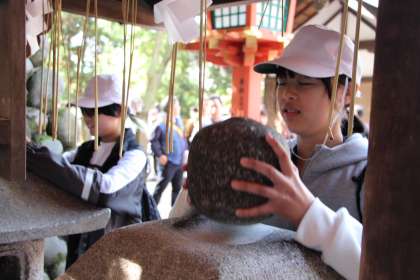 お参りをしてから、千本鳥居をくぐり、おもかる石、おみくじなどを経験しました。
