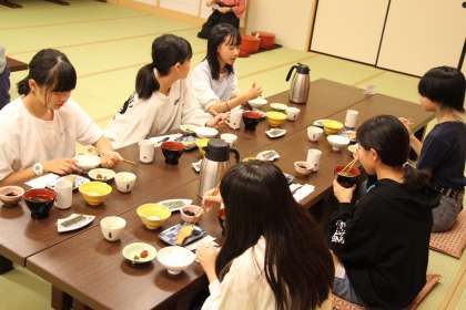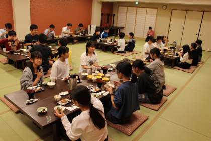 朝食の様子です。いつもより少し早く(?)、6時40分「いただきます」でしたが、美味しくいただきました。