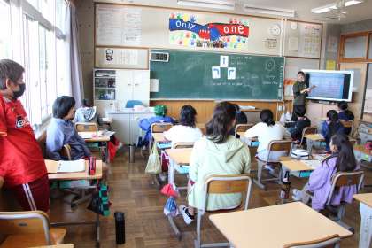 5年生外国語 公開日 2023/10/17 更新日 2023/10/17 お知らせ 5年生の外国語「英語での道案内」の授業の様子をお知らせします。目的地に案内するために、どのように説明したらよいのかを学びました。