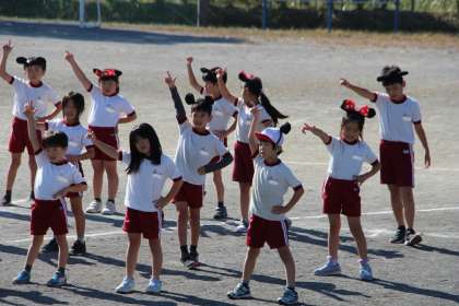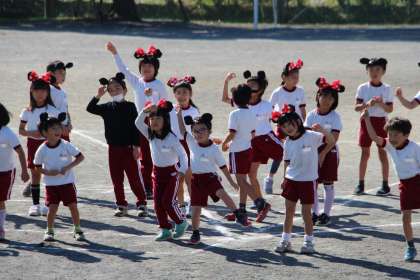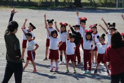 1・2年生の体育「表現運動」の様子をお知らせします。本時は、本番の雰囲気を出すために小道具の「耳」をつけて練習しました。