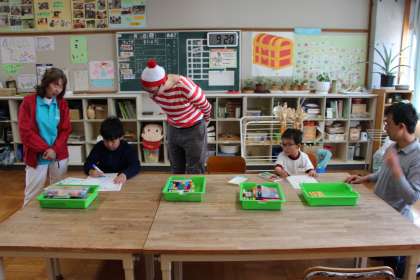 あすくす学級ハローウィン 公開日 2023/10/27 更新日 2023/10/27 お知らせ あすくす学級の「ハローウィン」に係る活動の様子をお知らせします。本時は、ALTが来室してくれ、本場のハローウィンについて教えていただきました。ハローウィン名物「お化けの絵」を描いている場面です。