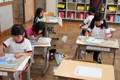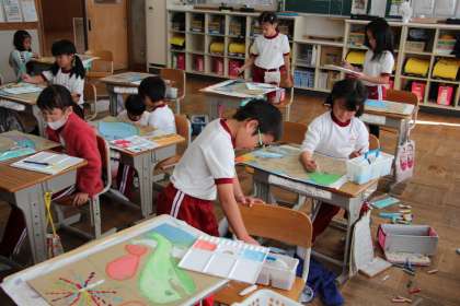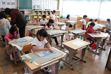 1年生図工 公開日 2023/11/13 更新日 2023/11/13 お知らせ 1年生の図工「おはなしの絵」の授業の様子をお知らせします。本時は、海と空を中心に色塗りをしました。くじらを生かす配色がポイントになりそうですが、子どもたちのイメージを大切にしたいと思います。