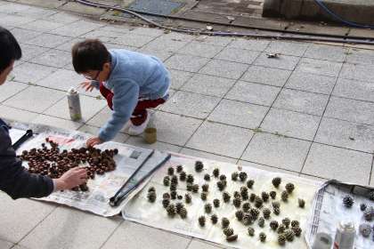 くすのき学級の授業 公開日 2023/11/13 更新日 2023/11/13 お知らせ くすのき学級のリースのパーツづくりと図工の授業の様子をお知らせします。リースづくりにあたって、集めた材料を加工する活動を行いました。松ぼっくりを、金や銀に色塗りをしたり、ドングリをパーツごとに分けたりしました。