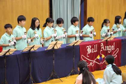 ハンドベル発表会 公開日 2023/11/15 更新日 2023/11/15 お知らせ 本校ハンドベルクラブの発表会を授業参観後に行いました。多くの保護者の方にご参観いただき、ありがとうございました。 地域の方向けとして、12月2日(土)の石畳朝市での発表会も計画しています。HPをご覧の方も、ぜひ観て、聴いていただけたら幸いです。