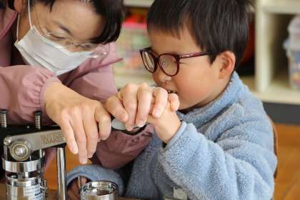 授業参観7 公開日 2023/11/15 更新日 2023/11/15 お知らせ あすくす学級の授業参観「缶バッチづくり」の様子をお知らせします。本校が缶バッチづくりを始めて3年になりますが、特別支援学級の活動からスタートしました。 本時は、6年生同様、保護者参加型の授業として、一緒に缶バッチづくりを行いました。