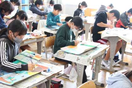 6年生の国語、図工、算数の授業の様子をお知らせします。図工は読書感想画に取り組んでいますが、進度に差が出てきたので、できた子から算数の復習を行いました。