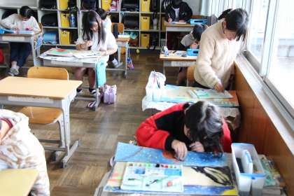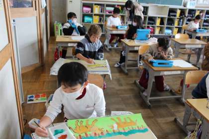 3年生図工 公開日 2023/11/20 更新日 2023/11/20 お知らせ 3年生の図工「読書感想画」の授業の様子をお知らせします。この単元も完成に近づき、どのように色を塗るかの工夫がポイントとなります。濃淡や遠近感、筆遣いを考えながら描きました。