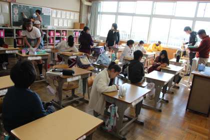 4〜6年生の朝の活動の様子です。ちょうど回った時が1時間目の準備時間であったので、普段の団欒の様子となります。