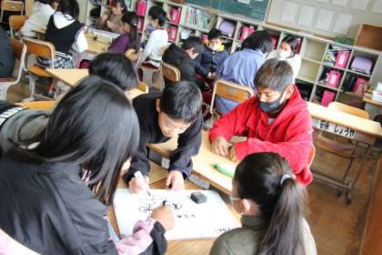 4・5年生道徳1 公開日 2023/12/05 更新日 2023/12/05 お知らせ 4・5年生合同道徳の授業「いじめ防止標語を考えよう」の様子をお知らせします。4・5年生合同の班を作り、「いじめ」をキーワードにして、関連する言葉をホワイトボードに書き出しているグループワークの場面です。