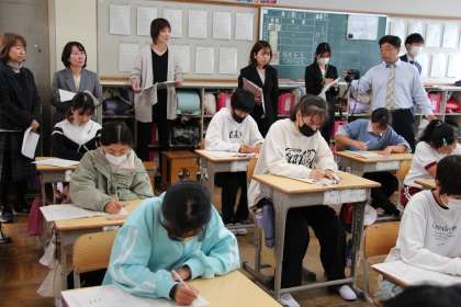 5年生国語 公開日 2023/12/12 更新日 2023/12/12 お知らせ 5年生の国語「椿原先生特別授業」の様子をお知らせします。今年度の学力学習状況調査の中から、正答率が低かった問題を題材に、「問題を解くための秘訣」を教わりました。 テンポのよさだけでなく、一人一人をこぼさない指導で、子どもたちは終始集中しながら授業を受けました。難しい内容であったにもかかわらず、みんな「とても楽しかった」「よくわかった」という感想でした。