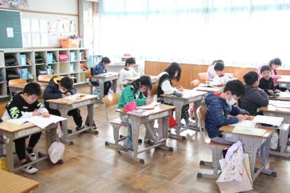 4年生の国語と算数の授業の様子をお知らせします。算数は「少数のかけ算、わり算」のまとめの時間でした。