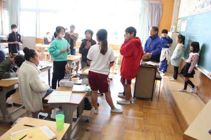 5年生の授業 公開日 2023/12/13 更新日 2023/12/13 お知らせ 5年生の社会と理科の授業の様子をお知らせします。3枚目の写真は、理科の授業の最中に1年生からの焼き芋が届いた時の様子です。 子どもたちの興味は焼き芋にくぎ付けで、授業を続けることができるわけもなく、どのように平等に分けようかと考えている場面です。
