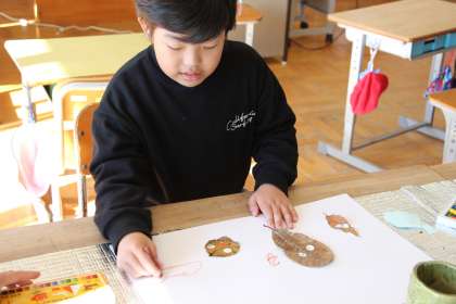 あすくす学級の授業の様子をお知らせします。あすなろ学級は図工で、葉っぱを使った作品作りを行いました。くすのき学級は、書写の授業です。真剣な表情で取り組むことができました。