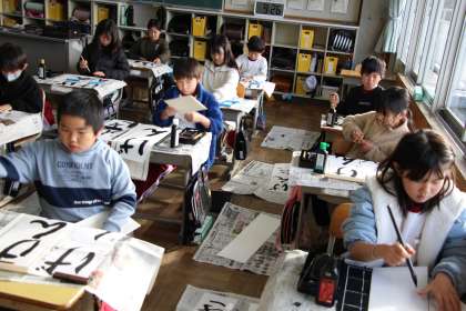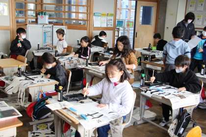 3年生の書写「書き初め練習」の様子をお知らせします。前回、書写ボランティアの高木先生に教えてもらったことを意識しながら書くことができました。書道は、心の様子が出てしまうものなので、ゆっくり落ち着いて、集中して書くことが大切ですね。