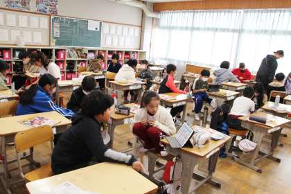 5年生の授業 公開日 2023/12/18 更新日 2023/12/18 お知らせ 5年生の社会と外国語の授業の様子をお知らせします。外国語は、リズムに合わせて英単語の発音をしようという授業でした。 ペアになり、タブレットの矢印で示された単語をスムーズに、リズミカルに発音するゲームを通して学びました。