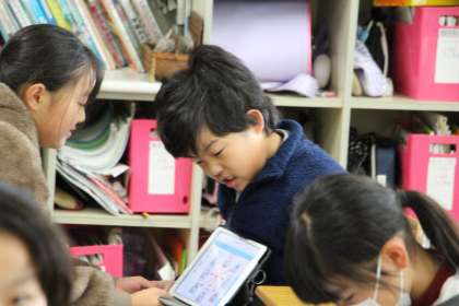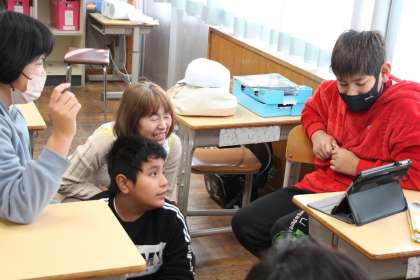 あすなろ学級の外国語と体育の授業の様子をお知らせします。外国語は、タブレットで示された英単語を発音する学習でした。