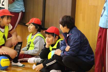 体育は、バスケットボールです。他のチームを応援している場面です。