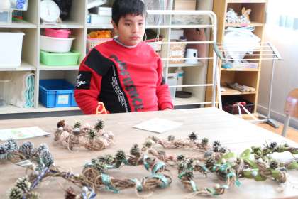 あすくす学級リースプレゼント 公開日 2023/12/19 更新日 2023/12/19 お知らせ あすくす学級で作ったリースを、各教室に飾ってもらおうと、プレゼントしました。私も今年度版のリースをいただきました。もらったリースは、昨年度のものと交換する形で校長室に飾りってあります。