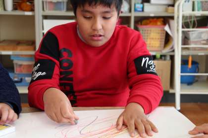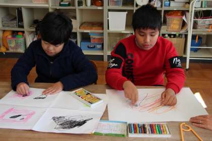 あすなろ学級の授業 公開日 2023/12/20 更新日 2023/12/20 お知らせ 昨日の記事になりますが、あすなろ学級の図工の授業の様子をお知らせします。本時は、題材も書き方もすべてフリーな感じで、自由に絵を描こうと行いました。絵は、描くものや大きさ、色遣いで、その時の心の様子がわかると言われます。心の調子はどうだったでしょうか!?