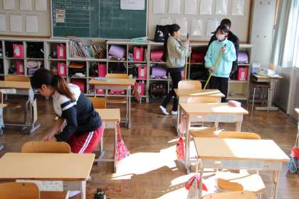 5年生「大そうじ」 公開日 2023/12/21 更新日 2023/12/21 お知らせ 5年生の「年末の大そうじ」の活動の様子をお知らせします。まず、大そうじが行われるようになったいきさつや背景の話を聞いた後、自分たちが使っている教室などをきれいにしました。 身の回りをきれいにした分、自分の心がきれいになると思います。いつもの清掃活動よりも、真剣な態度で取り組むことができました。