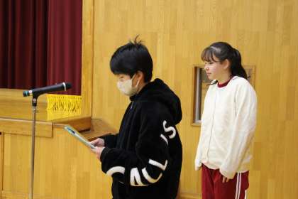 全校集会 公開日 2023/12/22 更新日 2023/12/22 お知らせ 本日、冬休み前全校集会を行いました。表彰伝達と校長の話、生徒指導担当の話でした。私からは、私が実際に受けた「いじめ」の体験談と「あいさつ」の大切さ、いじめの「い」にあいさつの「あ」が加わると「あい=愛」になる。2024年は愛であふれる石畳小学校に、みんなでしていこうという話をしました。