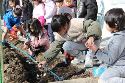 1年生生活科 公開日 2023/12/22 更新日 2023/12/22 お知らせ 1年生の生活科「チューリップの球根植え付け」の様子をお知らせします。4色の球根ごとにグループ分けをして、学級園にチューリップの球根を植えました。 初めに算数の「同じ数ずつ」の授業の復習を兼ね、各自の机の上に同じ数になるように並べました。カリキュラムマネージメントの授業となりました。