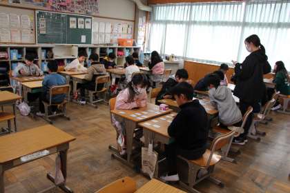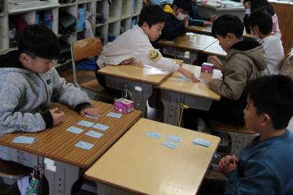 4年生国語 公開日 2024/01/10 更新日 2024/01/10 お知らせ 4年生の国語「百人一首」の授業の様子をお知らせします。ちょうど正月でもあるので、タイムリーな内容だと思います。 百人一首を行うことで、短歌や俳句への理解も進むし、古文の知識も身につきます。また、耳なじみのよい歌を覚えるチャンスでもあります。