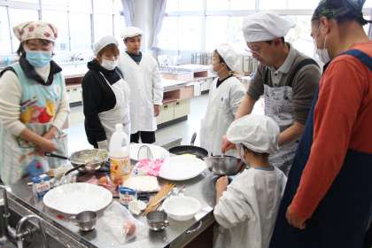 あすくす学級親子調理実習1 公開日 2024/01/19 更新日 2024/01/19 お知らせ あすくす学級の「親子調理実習」の様子をお知らせします。本時は、ホットケーキ、ドーナツ、パン、ポップコーンを作りました。家の人と一緒に調理したので、より安心感をもって取り組むことができました。