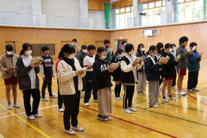 6年生の合唱練習の様子をお知らせします。本日は、卒業式に向けて、講師の先生に指導してもらいました。高い音の出し方の練習や、立ったり座ったりしながら歌うなど、変化に富んだ練習でした。