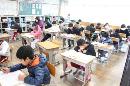 テストに取り組む2・4・6年生の真剣な姿をご覧ください。