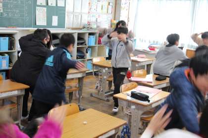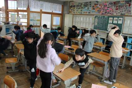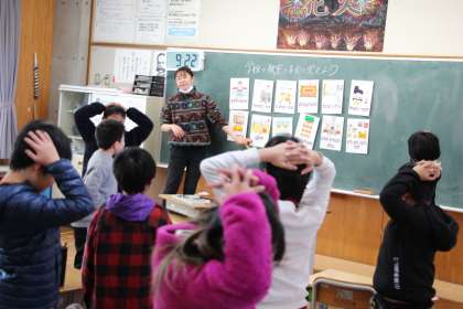 4年生外国語活動 公開日 2024/01/26 更新日 2024/01/26 お知らせ 4年生の外国語活動「学校の教室の名前を覚えよう」の授業の様子をお知らせします。学校にある様々な教室の名前を英語で覚える学習です。 いつものように耳で聴き、キーワードが出たら反応するゲームを通して学びました。耳→頭(脳)→体を使って学ぶので、普通の学習以上に記憶に残ると思います。