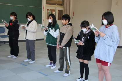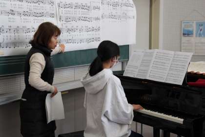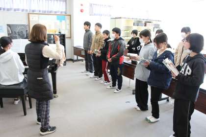 6年生の音楽「卒業式の歌練習」の様子をお知らせします。アルトとソプラノのパートに分かれて練習した後、一緒に歌い合わせの練習をしました。写真は、それぞれのパートに分かれて練習している場面です。
