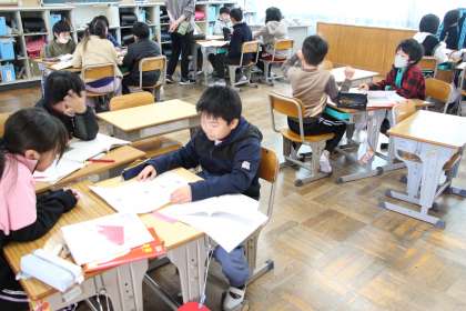 4年生国語 公開日 2024/02/14 更新日 2024/02/14 お知らせ 4年生の国語「調べたことを報告しよう」の授業の様子をお知らせします。本時は、調べることのテーマを決める時間でした。今後の展開は、「アンケートを取り、その結果をまとめ、話の組み立てを考えて、調べたことを報告する」となっています。 この単元を通して身に着けたい力は「わかりやすく伝える」です。どんな報告となるのか楽しみです。
