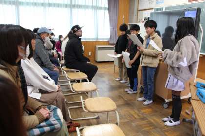 4年生の学習発表会の様子をお知らせします。4年生は、総合的な学習「石畳の環境守り隊」をテーマに、白川での生き物調査から課題を発見し、調べ学習を通して学びの成果を発表しました。