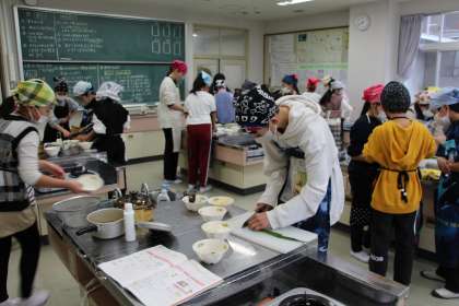 5年生家庭科 公開日 2024/02/21 更新日 2024/02/21 お知らせ 5年生の家庭科「調理実習」の様子をお知らせします。本時は、「ご飯とみそ汁」の定番メニューを作りました。日本の食卓では、なくてはならないメニューですが、作り方や出汁などの工夫によって味が変化する「奥が深いもの」だと思います。私も、子どもたちが作ってくれた「ご飯とみそ汁、煮干し」を、美味しくいただきました。