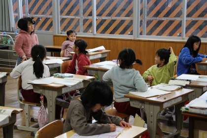 1年生の国語「スイミー」の授業の様子をお知らせします。本時は、第四場面の登場人物について出し合いました。
