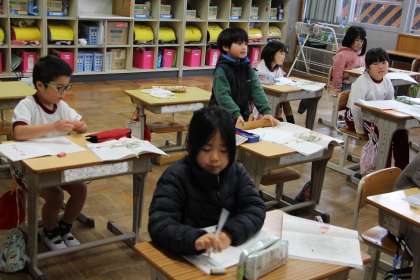 主人公のスイミーやくらげ、いせえび、いそぎんちゃくなどが出てきますが、教科書に出てくる描写の部分もきちんと発表できました。