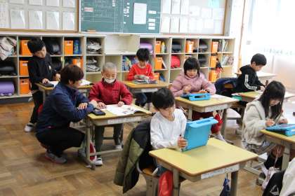 2年生の国語と算数の授業の様子をお知らせします。国語は「好きな場所を教えよう」の授業で、みんなに紹介する「好きな場所」について考えている場面です。