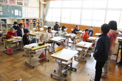 2年生算数 公開日 2024/02/28 更新日 2024/02/28 お知らせ 2年生の算数「何番目」の授業の様子をお知らせします。「みんなで7人います。担任の先生の前には2人います。後ろには何人いますか」というような問題を考えました。まず実際に並んで数えた後、どのように考えたらいいのかについて学びました。