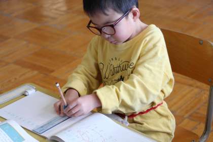 あすくす学級の授業 公開日 2024/03/01 更新日 2024/03/01 お知らせ あすくす学級の授業の様子をお知らせします。あすなろ学級は「自立」の時間で、色の学習をしながらピースを立てていく活動や、ひもを結ぶ活動を行いました。 くすのき学級は算数「2けたの筆算」を行いました。以前もお知らせしましたが、定規を使って直線を引くときは、なぜか左手で描きます。(写真のように)これも二刀流といえると思います。