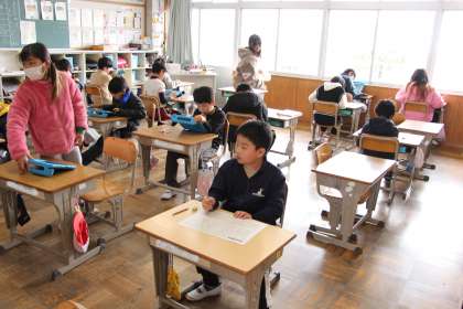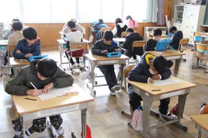 4年生算数 公開日 2024/03/06 更新日 2024/03/06 お知らせ 4年生の算数のテストの様子をお知らせします。テストが終わった子からタブレットを取り出し、キュビナなどの学習を行いました。