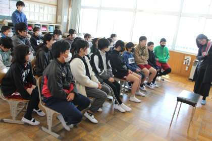お話出てこい(読み聞かせ)2 公開日 2024/03/07 更新日 2024/03/07 お知らせ 4〜6年生の読み聞かせ「お話出てこい」の様子をお知らせします。 6年生は、最後の読み聞かせとなりました。ボランティアの方から、本だけでなく手紙も読んでいただき、感動の時間となりました。