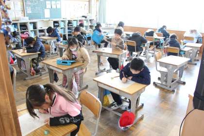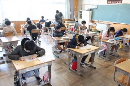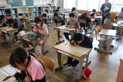 本日の4年生は、テストのオンパレードでした。卒業式練習を挟んで、テストを行っていました。テストが終わった子から、タブレットを取りだし、キュビナの問題に挑戦しました。