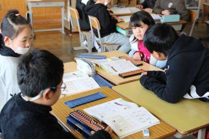 3年生算数 公開日 2024/03/08 更新日 2024/03/08 お知らせ 3年生の算数「そろばん」の授業の様子をお知らせします。その昔は、学習の基本は「読み書きそろばん」といわれるほど、誰もが習い、できて当たり前の学習でした。最近では、そろばんの使い方を知らない人も多くいると思います。ここでしっかり覚えてくださいね!