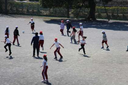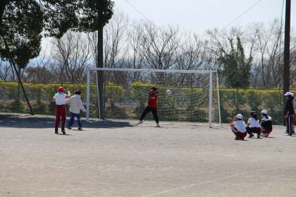 5年生体育 公開日 2024/03/11 更新日 2024/03/11 お知らせ 5年生の体育「サッカー」の授業の様子をお知らせします。運動能力が比較的高い5年生ですが、授業の様子を撮った写真を見ても、その具体例がわかります。 1枚目の写真を見ると、左上部の女子がボールをもった瞬間、多くの子が次のプレーを考え、動き始めています。一般的な体育のサッカーでは、ボールによって行くか、その場で立ち止まってパスを要求することが多いのですが、5年生は一味違います。