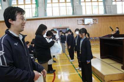 引継式2 公開日 2024/03/14 更新日 2024/03/14 お知らせ 今まで学校をリードしてきた6年生の功績をたたえ、各自にメダルの授与を行いました。このメダルは、PTAから卒業記念品を兼ねています。 その後、6年生から在校生へのプレゼントと私たち教職員にも手作りグッズをプレゼントしてくれました。