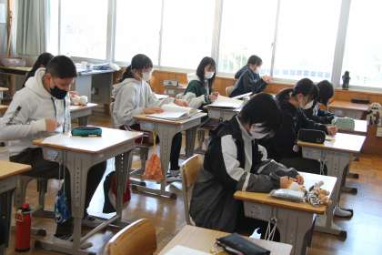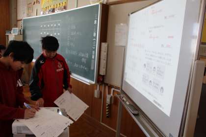 6年生算数 公開日 2024/03/18 更新日 2024/03/18 お知らせ 小学校最後の授業は算数でした。(この後の授業は、片付けとお楽しみ会のため)それも、最後までテスト! とはいうものの、並行して担任から通知表を受け取っていたので、自分で解き、自分で答え合わせをする形式で行いました。 通知表を受け取った児童からは、卒業を具体的に感じてきたのか、センチメンタルな表情も見られました。