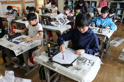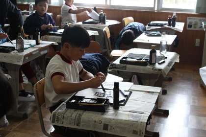 5年生の書写の授業の様子です。 「道」という字を集中して書いていました。