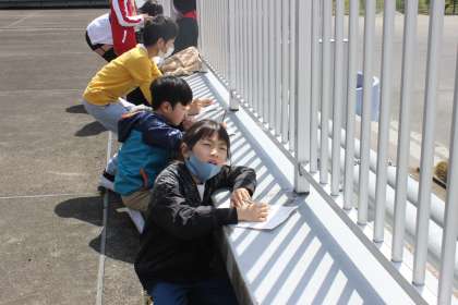 5年生の理科の学習の様子です。 テラスに出て、天気について調べていました。